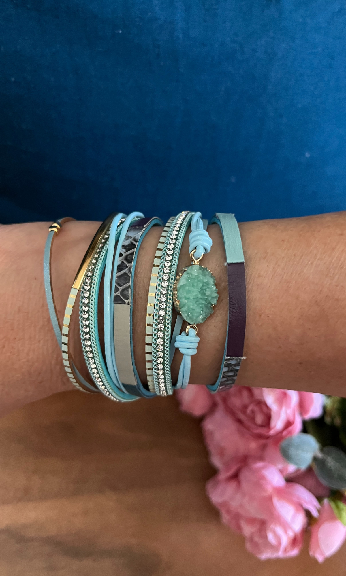 This beautiful boho inspired multi-layer bracelet with a rhinestone resin charm will be your new favorite accessory. It’s perfect for both casual and formal wear.