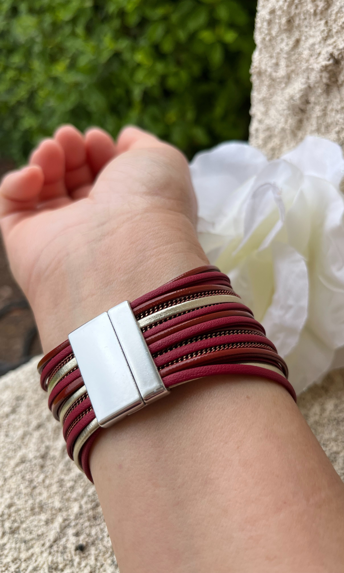 This beautiful boho inspired wide wrap leather bracelet is perfect for those who like the simple and elegant look. Made from high quality hand cut leather with a strong magnetic clasp. It is beautiful as it is durable. You’ll love this unique and stylish look on your wrist. A sister favorite!
